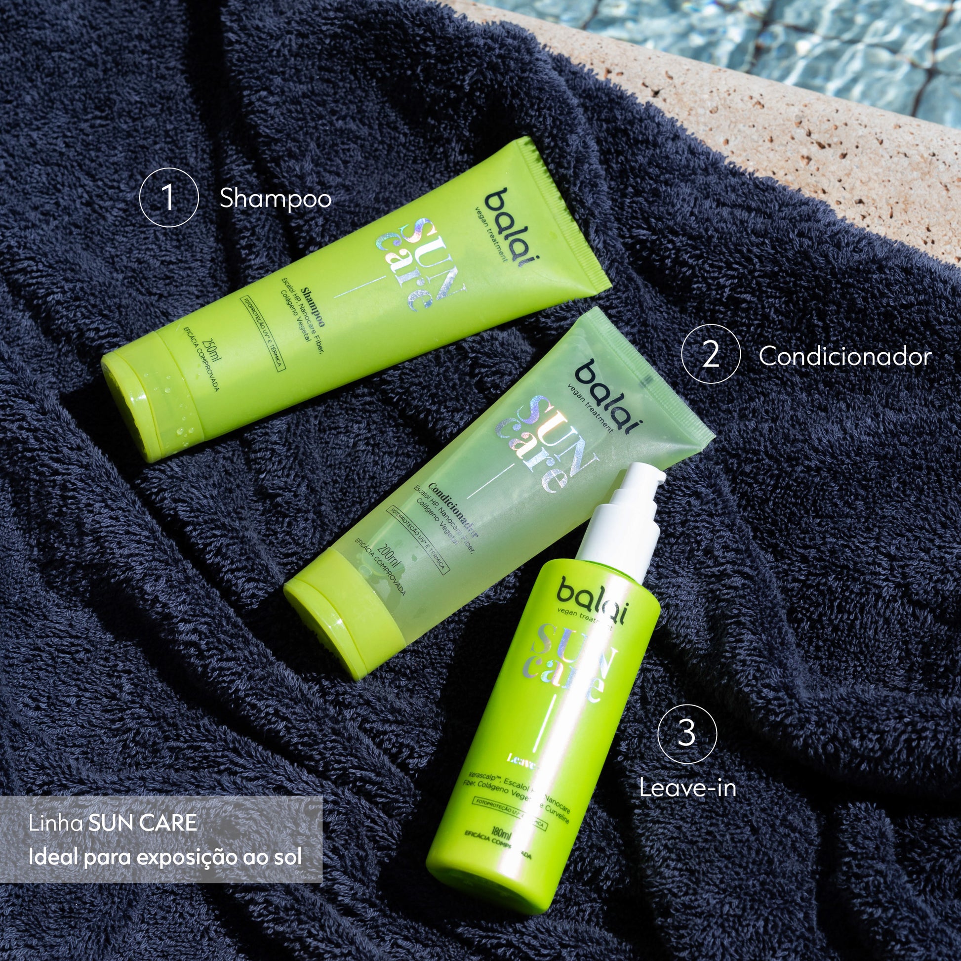 O Condicionador Sun Care foi formulado para hidratar, tratar, selar as cutículas, reduzir o frizz, facilitar o desembaraço e, ao mesmo tempo, proteger o cabelo contra os danos causados pelo calor e pela radiação solar — dois dos principais fatores que comprometem a saúde capilar. Indicado para todos os tipos de cabelo, especialmente os coloridos ou quimicamente tratados, que exigem maior cuidado para manter a cor vibrante e evitar o desbotamento precoce.