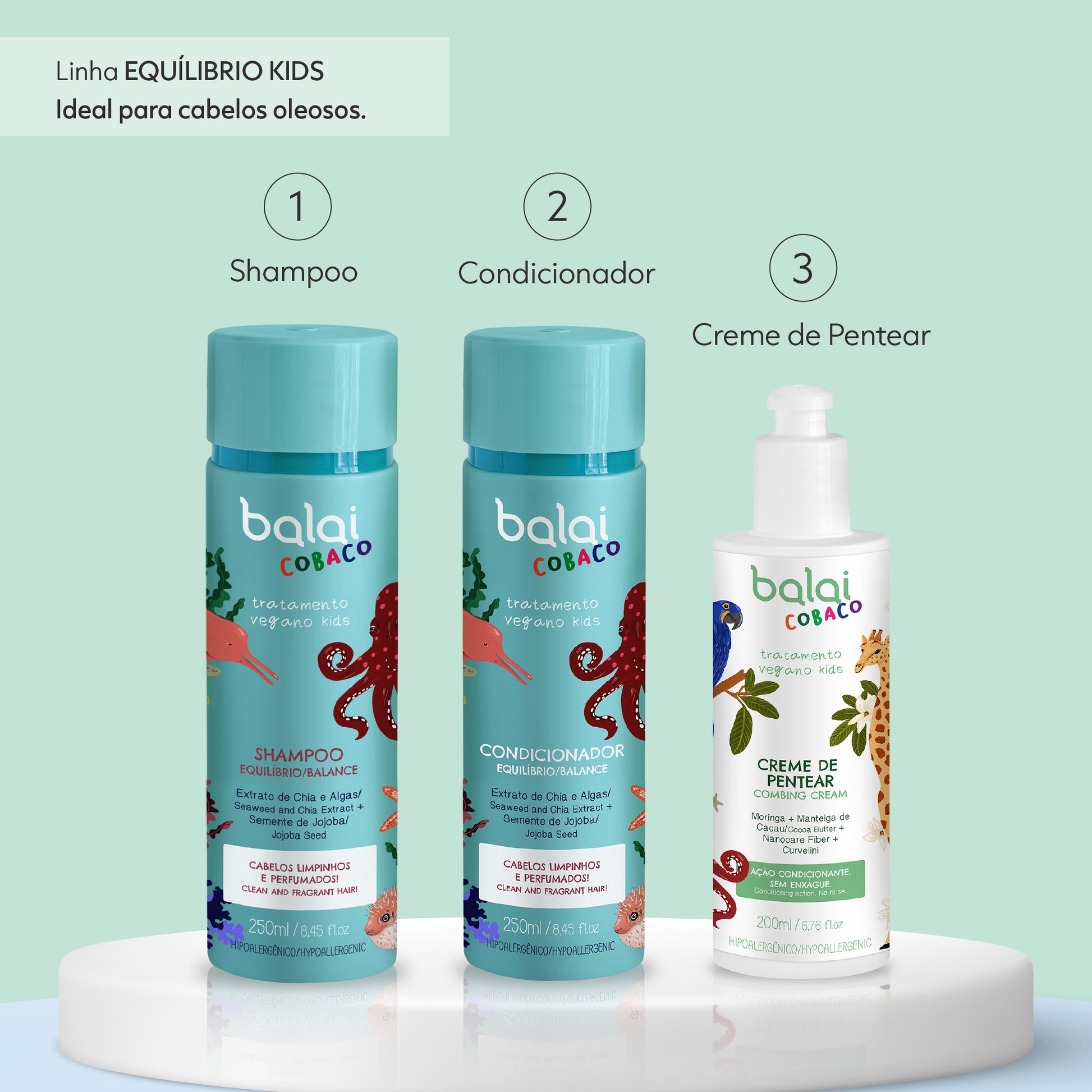 O Condicionador Kids Equilíbrio promove uma hidratação segura para os cabelos das crianças e adolescentes por não conter em sua formulação disruptores endócrinos. Facilita o desembaraço, equilibra a oleosidade do couro cabeludo e colabora para o crescimento saudável dos fios.