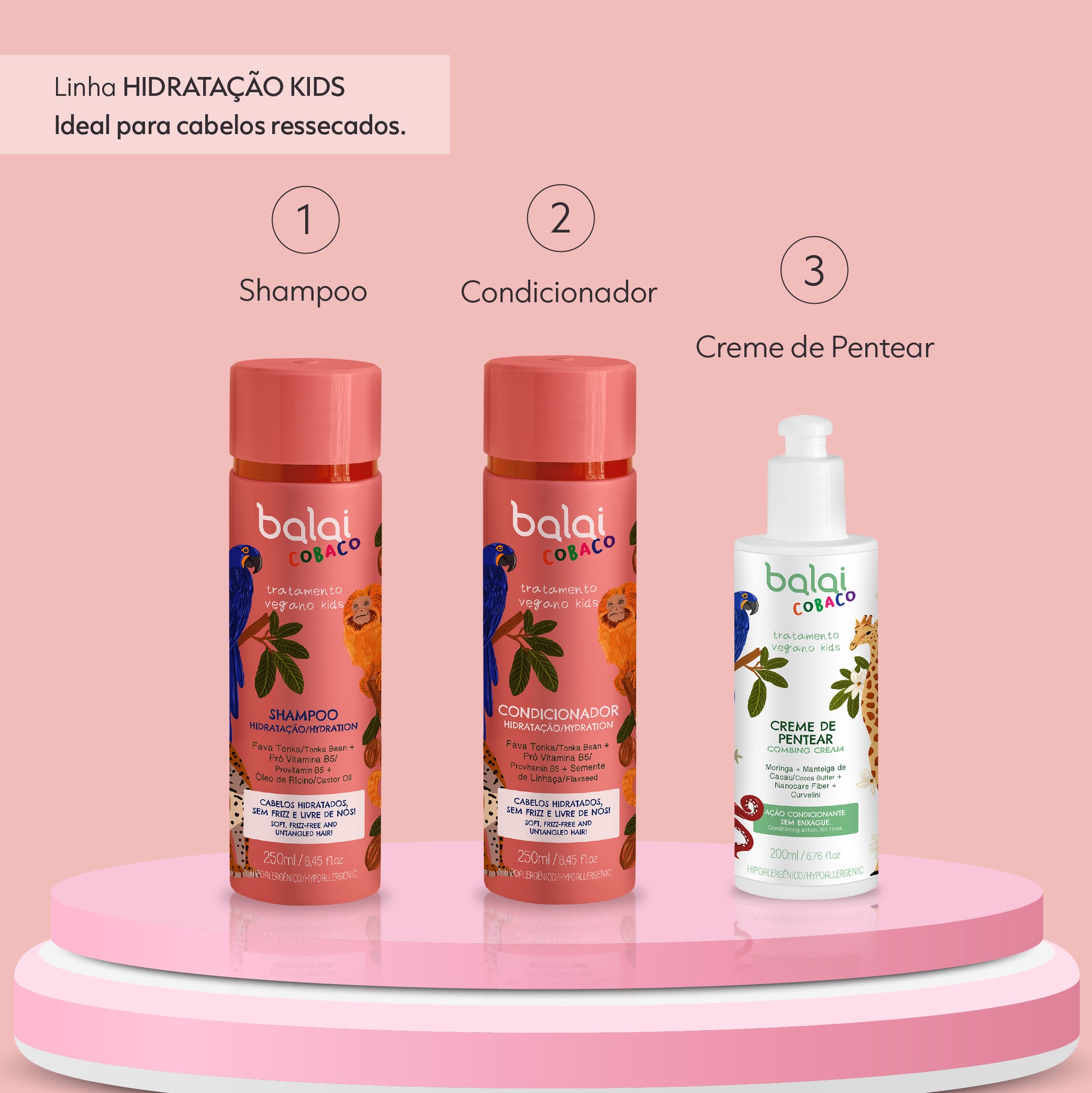 O Condicionador Kids Hidratação promove uma hidratação profunda e segura para crianças e adolescentes por não conter em sua formulação disruptores endócrinos. Hidrata e repara os fios, ajuda a controlar o frizz e combate o ressecamento.