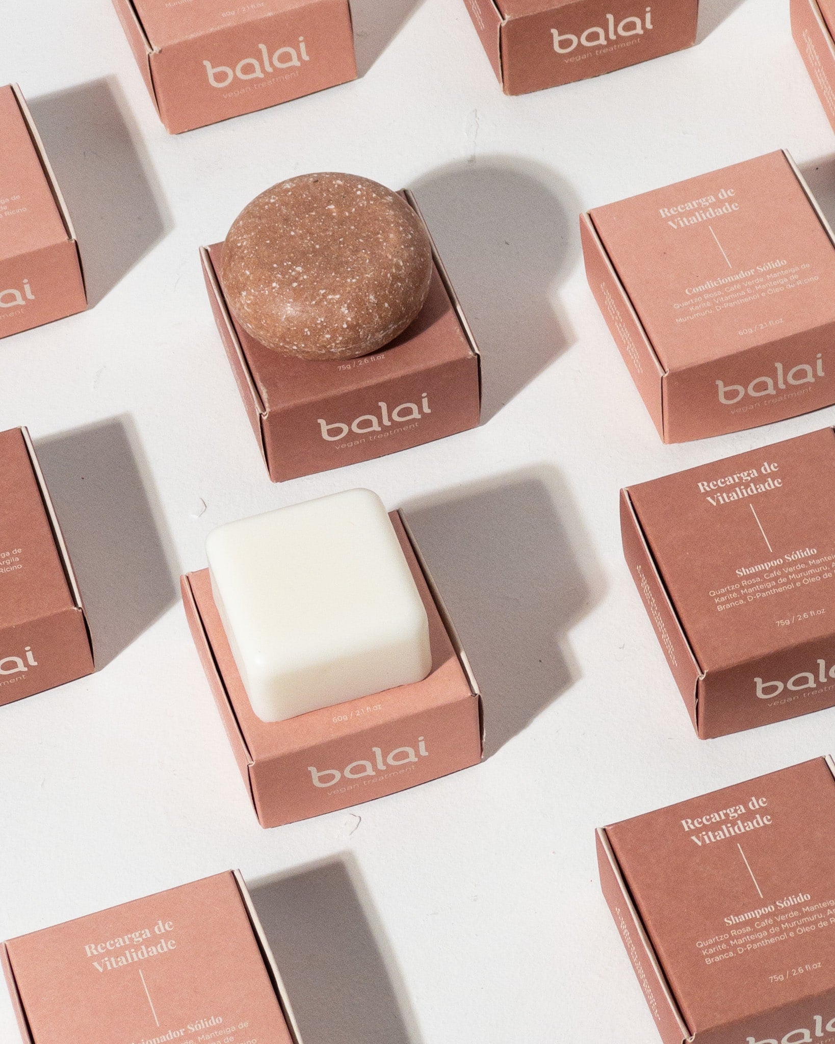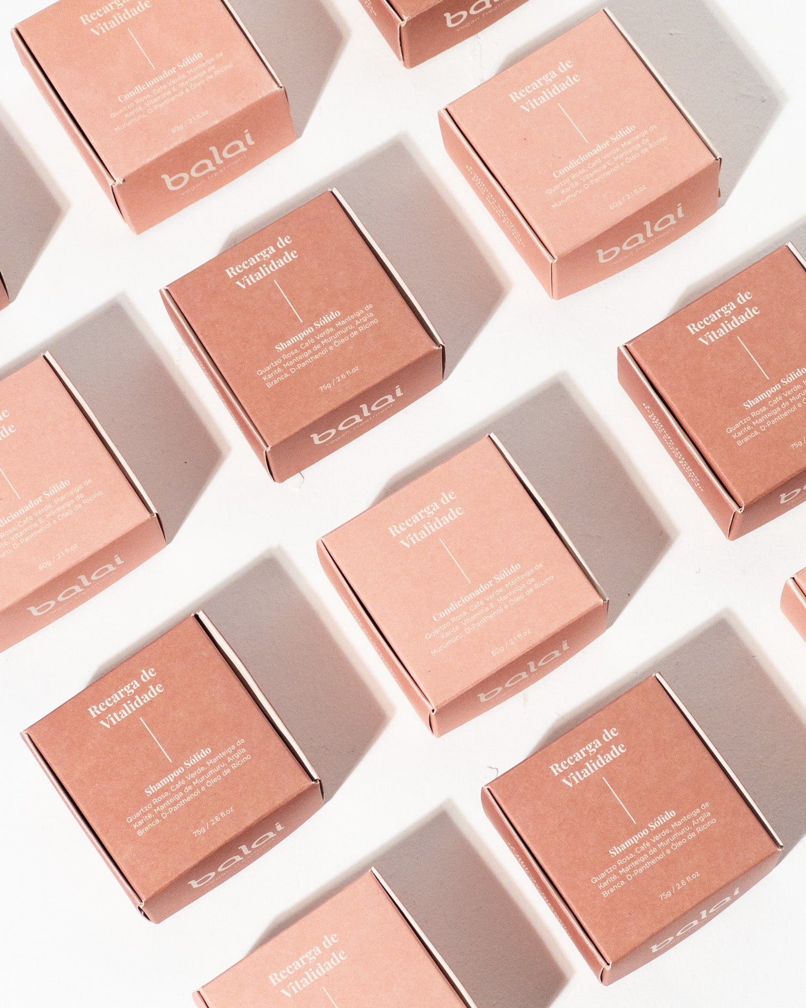Pela abrangência dos ativos e benefícios, essa linha se destina a todos os tipos de cabelos, podendo ser utilizada desde cabelos lisos a cacheados, oleosos e mistos, virgens e tingidos que estão desvitalizados. Os fios desvitalizados geralmente apresentam ausência de brilho, pouca elasticidade, tendem a ser mais finos, secos e quebradiços A versão sólida é uma alternativa prática e ideal para quem preza pelo consumo consciente. Provoca menor impacto ambiental, ao dispensar o uso excessivo de água na produção e a necessidade de embalagem plástica. A composição das barrinhas é riquíssima em ativos naturais e óleos. Além dos ativos: Café verde, Quartzo Rosa e D-Panthenol, possui também Manteiga de Karité, Murumuru, Óleo de Rícino e Argila Branca.